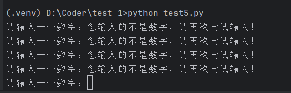 print("您输入的不是数字,请再次尝试输入!")小贴士