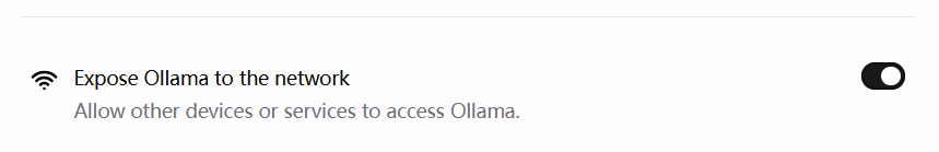 在安装了 Ollama 的电脑上找,首先需要打开如下选项: