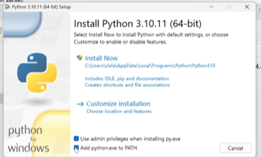安装程序启动,该页面选择 add python.exe to PATH 。